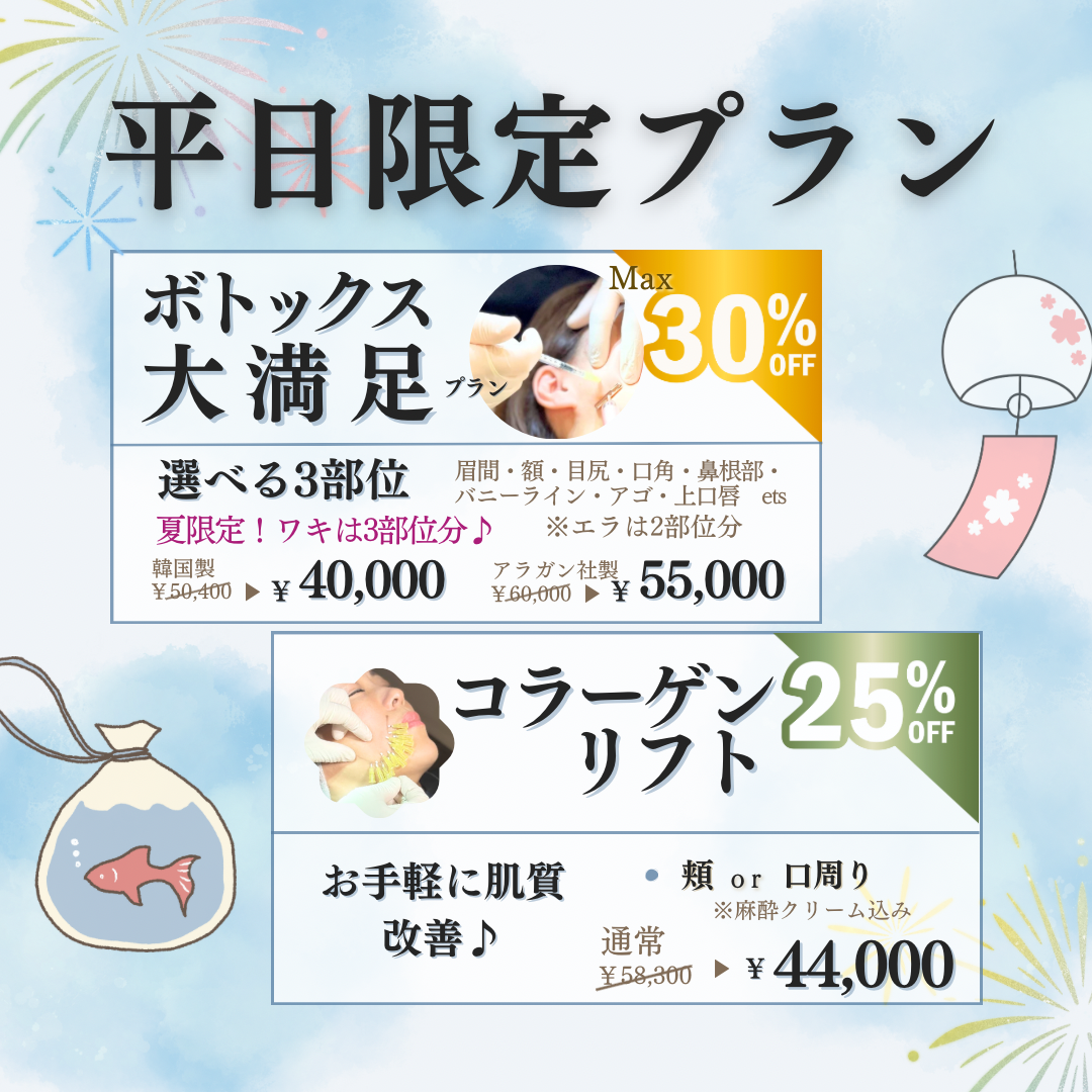 | 2025.10.1 | 【看護師施術 一部予約再開のお知らせ】 |