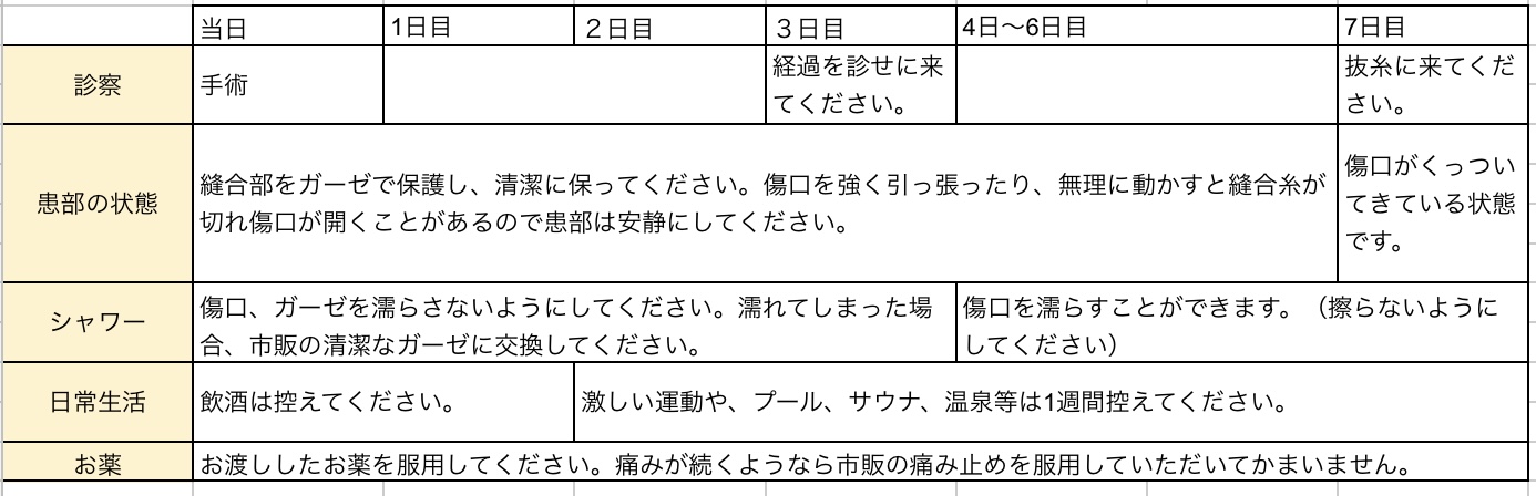 ・お渡しする薬を服用してください。痛みが続く場合、市販の痛み止めを服用していただいてかまいません。