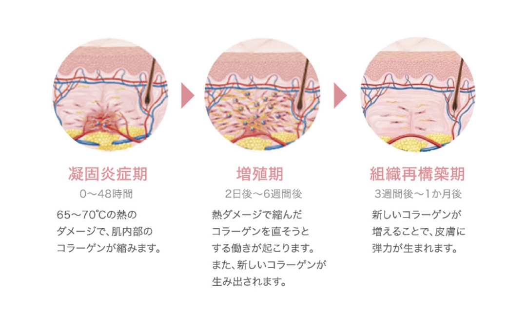 HIFUを受けた肌はダメージを修復しようとし、肌本来に備わっている再生機能により、コラーゲンが生成されます。